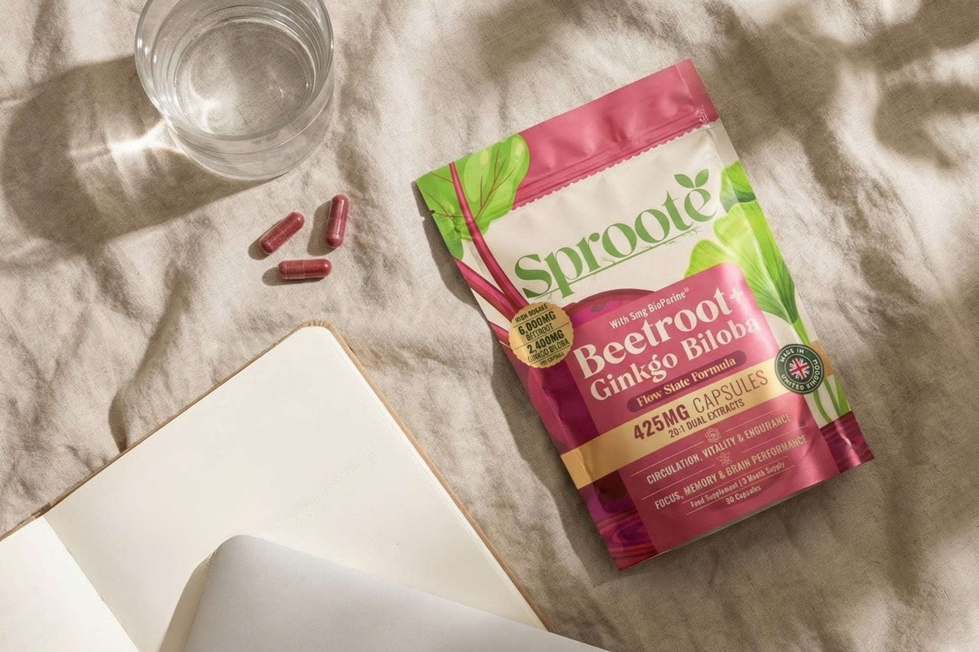 Beetroot is popular for circulation support, while ginkgo biloba is traditionally used for brain and cognitive support. Together, they create a balanced, performance-focused botanical blend.